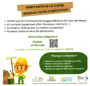 La Communauté d’Agglomération du Pays de Meaux OFFRE un composteur aux habitants de ses 26 communes adhérentes, s’ils n’en ont pas encore bénéficié.
